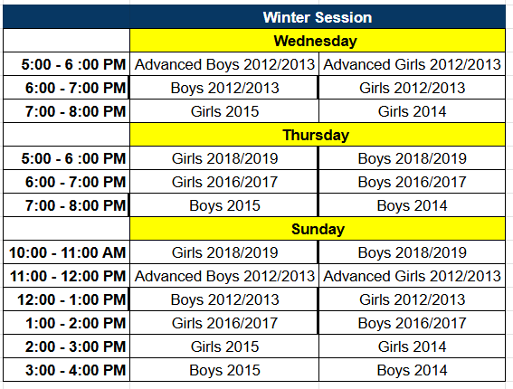Session 3 | Jan 7, Feb 4 | 4 Weeks, 2x a week | $ 115.00 | +$40 for rec league |